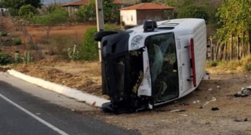 Ambulância de Bonito de Santa Fé tomba após colidir com animal na PB-400 (Foto: Reprodução)