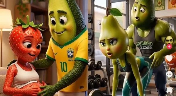 Com frutas antropomorfizadas (com características humanas) e enredos polêmicos, as “Novelas das Frutas”, criadas por Inteligência Artificial (IA), tornaram-se um fenômeno nas redes sociais, especialmente no TikTok. O sucesso, no entanto, acende um alerta entre especialistas, que questionam os possíveis impactos psicológicos desse tipo de conteúdo em crianças e jovens.