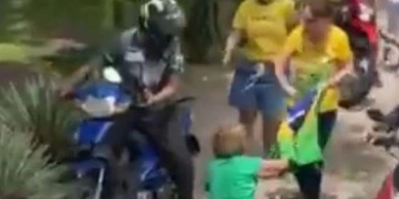 Em um vídeo publicado nas redes sociais, é possível ver o momento em que uma idosa está na calçada e cumprimenta o ex-presidente. Na sequência, é atropelada por uma moto, que também estava na calçada.
