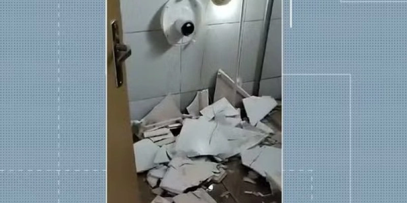 O desabamento da estrutura de gesso de um banheiro localizado em um hospital particular de Campina Grande, nessa quarta-feira (2), provocou susto entre pacientes. Uma mulher chegou a ser atingida por estilhaços de gesso, mas não se feriu com gravidade.