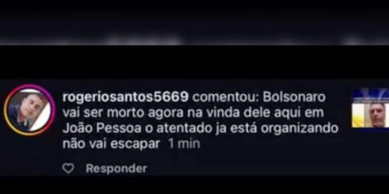 O ex-presidente está em João Pessoa, participando de campanha eleitoral. Em uma rede social, o homem investigado disse que “Bolsonaro vai ser morto agora na vinda dele aqui em João Pessoa; o atentado já está organizado, não vai escapar”.