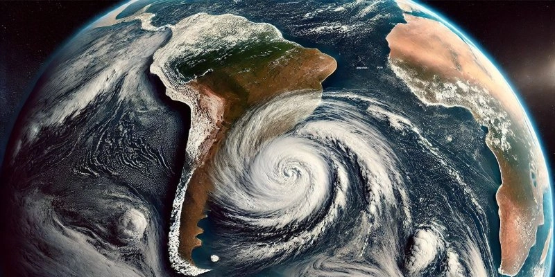 No Hemisfério Sul, o movimento da massa de ar é no sentido horário e concentra umidade no centro do ciclone, ou seja, na área de menor pressão.