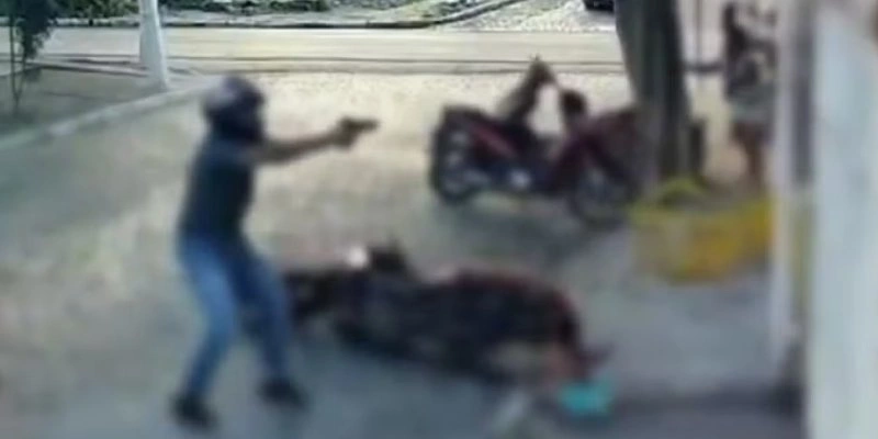 No vídeo, é possível ver três homens, duas mulheres e a criança em uma calçada. Em seguida, outros dois homens chegam ao local de moto, já atirando contra as vítimas. Os adultos entram na residência para escapar dos tiros, e a menina fica na calçada.