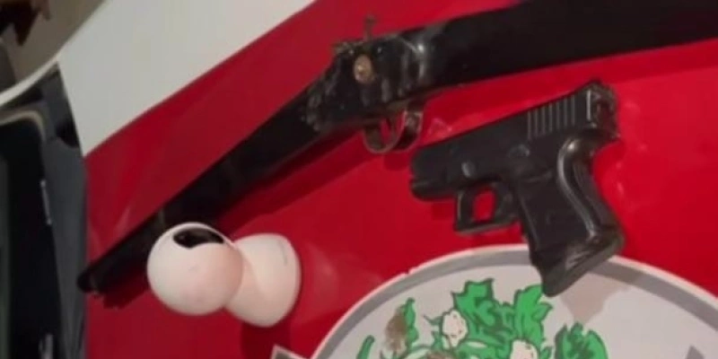 Os suspeitos tentaram fugir do local, mas foram alcançados. Diante dos fatos ocorridos, a polícia averiguou a residência onde os homens estavam e lá encontraram diversos papelotes de maconha, um simulacro, uma arma com suporte para munição de calibre 12, espoletas e uma ave silvestre mantida em cativeiro.