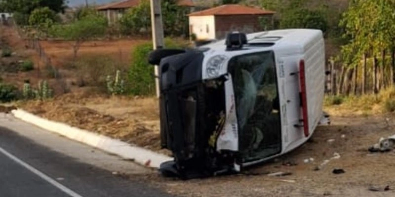 Uma ambulância do município de Bonito de Santa Fé tombou na madrugada deste sábado (29) após colidir com um jumento solto na rodovia estadual PB-400, trecho que liga Cajazeiras a São José de Piranhas.